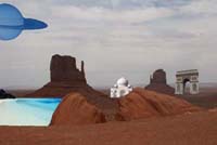 « il ne cherche pas à faire vrai », « il joue de l'extérieur et de l'intérieur », « Il ne respecte pas l'échelle des plans », « Notre carte postale peut paraître réelle parce qu'on utilise des photos , mais on voit bien que les morceaux de paysage ne sont pas logiques »