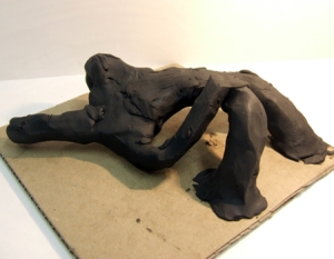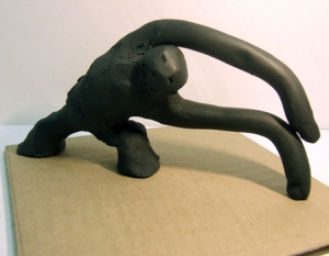 Explorer l'espace Votre personnage tente d'atteindre l'endroit le plus éloigné du support avec une partie de son corps. trois points d'appui maximum - sculpture autoportante plaque de carton de 30x15 cm (pliée en deux), boule de pâte à modeler, 30 mn