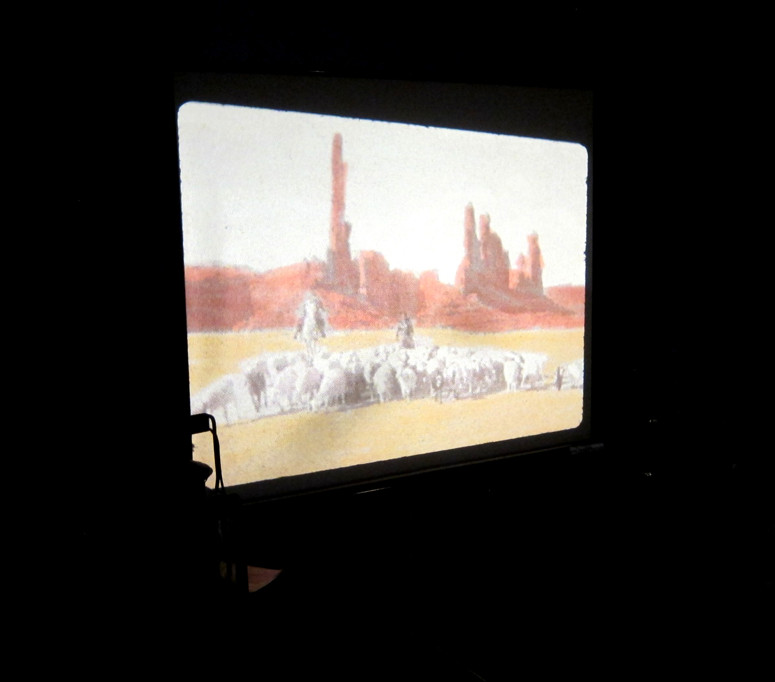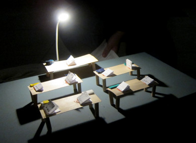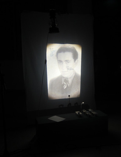 | Ici, Sienna projette des diapositives des photos de sa famille sur un drap qu’elle a brodé avec sa grand mère. 3 septembre 1939 : La France et l’Angleterre déclarent la guerre à l’Allemagne. 1942 : déportation à Gorges, l’arrière grand père de Sienna est arrêté. Lucie éclaire la maquette d’une classe d’école qu’elle a reconstituée. Septembre 1947 : le grand père de LUCIE découvre le livre qu’il offrira bien plus tard à sa fille en souvenir de ses lectures d’écolier Thomas projette des diapositives de paysages traversés par sa grand mère, qu’il a recolorisées au feutre. Mai 1968 : c’est le début des grèves étudiantes, « on arrête tout, on réfléchi et c'est pas triste. » La grand mère de Thomas décide de partir faire le tour du monde. Lucas projette des mains qu'il a photographiées et y dépose successivement une bague en papier, couche par couche. Mai 1945 : l’arrière grand mère de Marius reçoit la bague qu’elle transmettra ensuite à la grand mère de Marius qui la portera tous les jours de sa vie. Aujourd’hui la bague est dans les mains de sa mère. Pendant ce temps la bague du chef de tribu Amérindien que Lucas recevra le jour de ses trente ans, se transmet déjà de père en fils. |