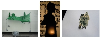 -images d'Élise Vigneron (theâtre d'objets, avec des expérimentations sur l'image et la lumièr, ci-dessus au centre).