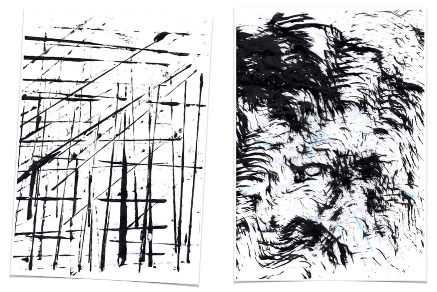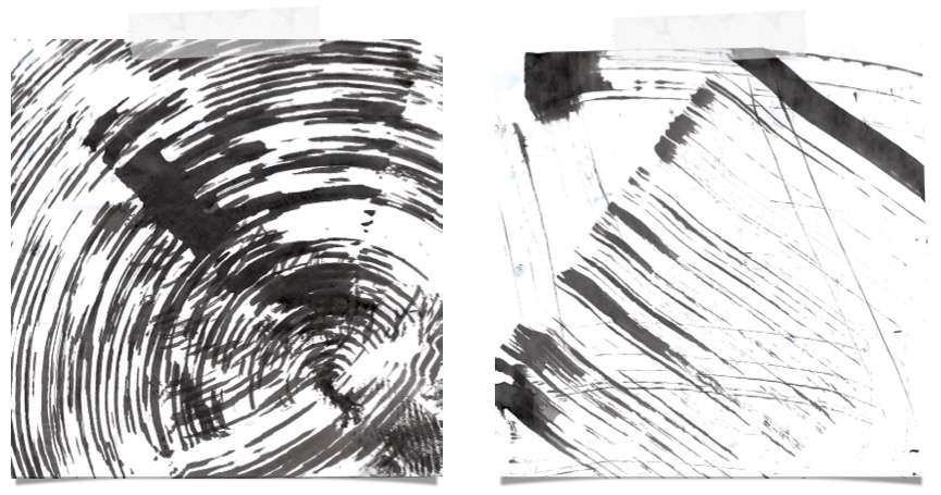 La demande est aussi formulée à l’oral, les élèves se saisissent rapidement de la demande : « donner l’impression que des lignes bougent sur la feuille ».