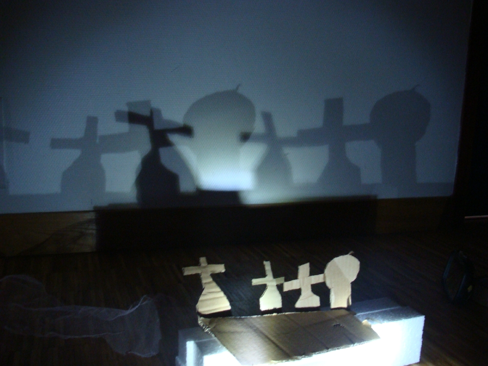 Il est aussi question d'ambiance créée par la qualité de la lumière et l'intensité des ombres, leur multiplication, la déformation et l'agrandissement des images projetées, l'impression qu'elles produisent en laissant imaginer plutôt que tout montrer.