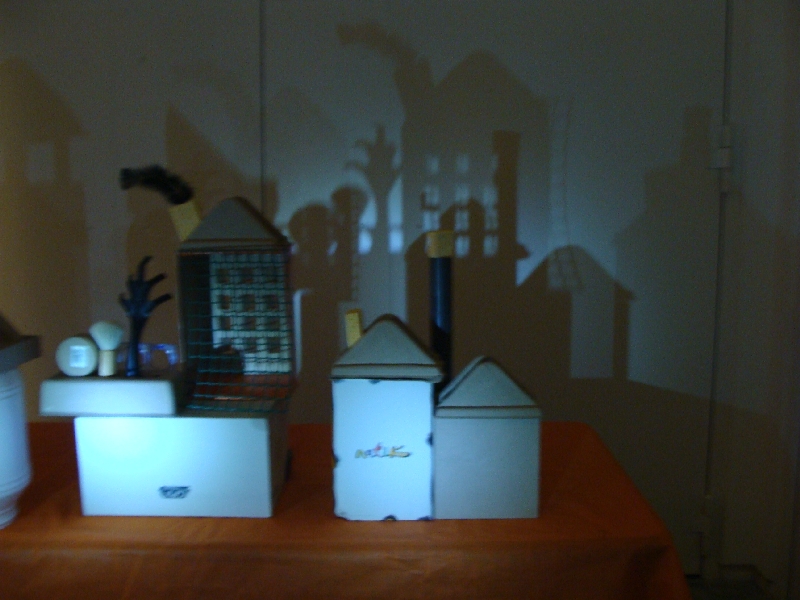 L'atelier consistait à travailler sur l'image de la ville. Pour ce faire, les élèves, par petits groupes, disposaient de lampes de poche et de matériaux divers aux formes variées.