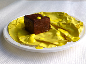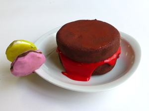Le volume est ici l'image d'un plat. La matérialité de l'objet tridimensionnel apporte un souci de réalisme fort, par le choix des textures et des couleurs.