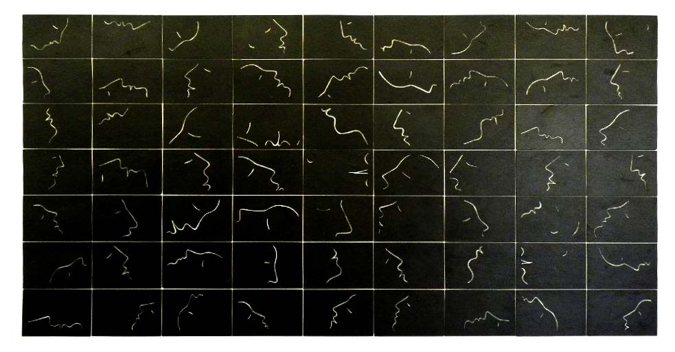 La leçon a pour point de départ différentes œuvres de Daniel TREMBLAY exposées au Musée des Beaux-Arts d'Angers, dont Sans titre de 1983, mur d'ardoises dans lesquelles apparaissent les dessins de profils, évidés dans la matière-même des panneaux ; le support d'accrochage (le mur) apparaît dans l'œuvre. Le travail de l'artiste ne peut être lu que par l'apparition du mur d'exposition.