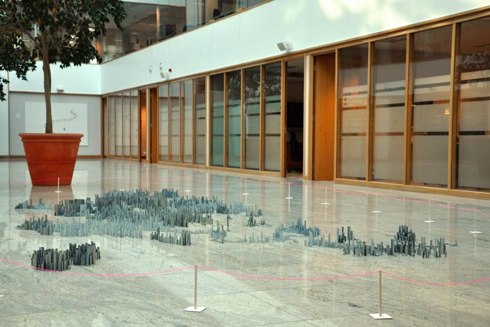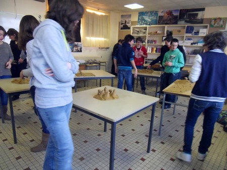 La taille de la salle, des supports tables, le temps donné, le matériau,vont obliger les élèves à travailler à échelle réduite tout en étant confronté à l'incitation "Grand paysage" S'agira-t-il d'une maquette? S'agira-t-il d'une sculpture? (Ai WeiWei, 100 ordos, 2007/ Peter Root, Ephemicropolis, 2010