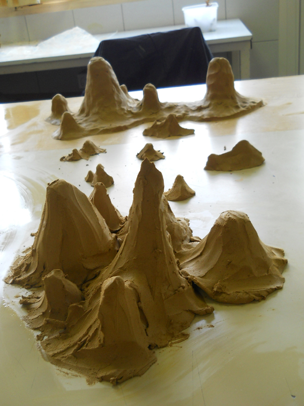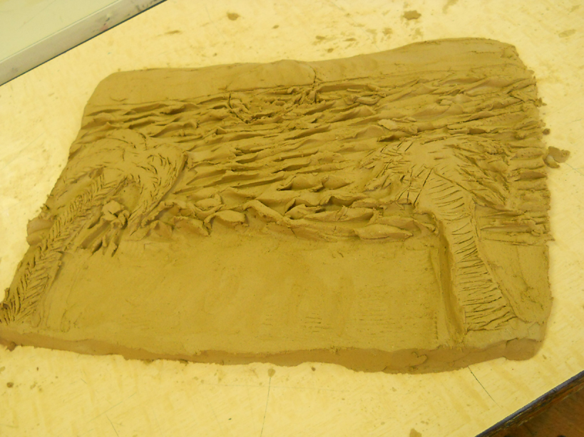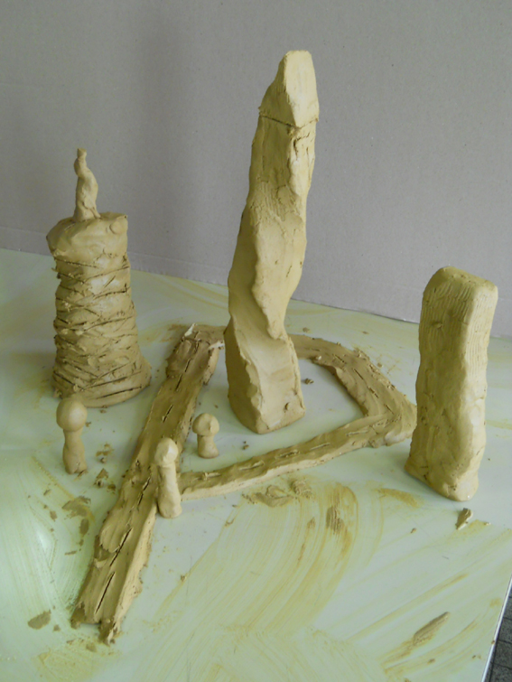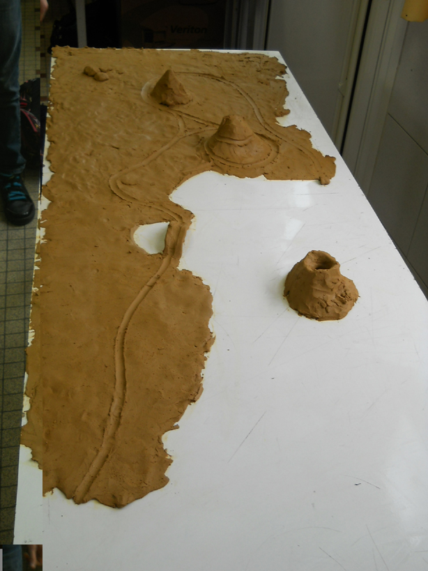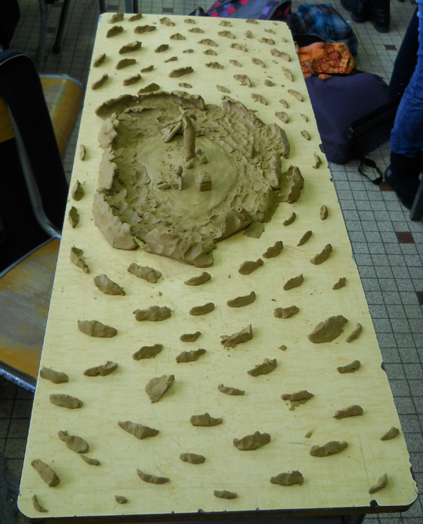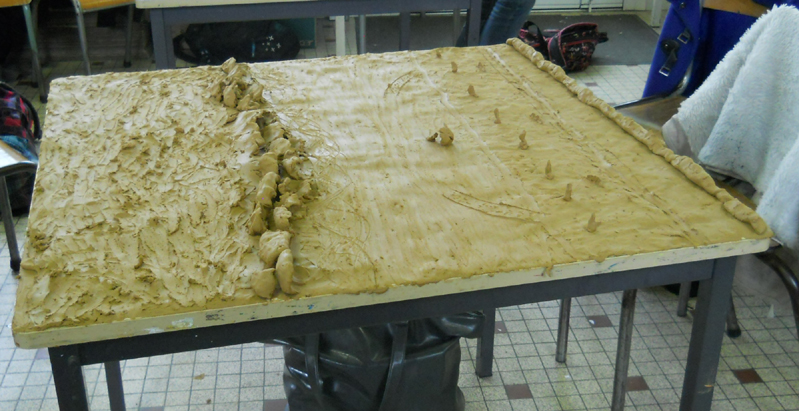 - l'espace représenté formera une unité matérielle, un ensemble continu, entier. La matière argile est utilisée pour former un plan, un sol (plat ou avec relief).