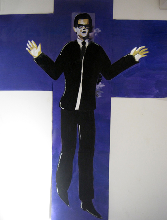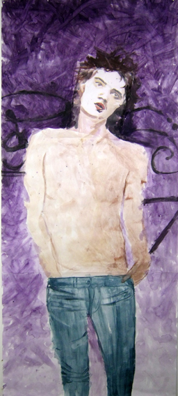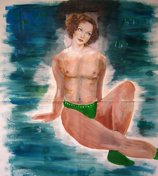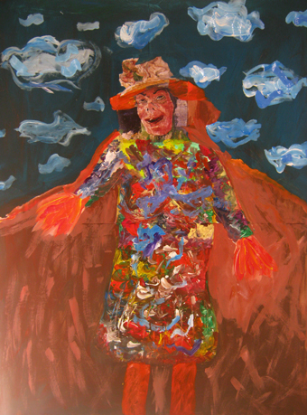 Prolonger à la peinture et sur un grand format une reproduction d'un visage peint.