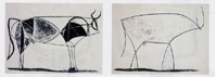 Une incitation lue dans un mémoire à l'IUFM m'avait plu et je trouvais qu'elle posait question : «je garde l'essentiel». Cette incitation mise en relation avec une œuvre comme Guernica, déroutant le regard par la profusion et l'éclatement, ne manque pas de poser problème. En effet «garder l'essentiel», c'est faire la synthèse, ce qui sous-entend d'avoir «fait le tour», de s'être approprié, un minimum, l'œuvre, de s'y retrouver. Cela nécessite une certaine capacité d'abstraction de la part des élèves. Mais une approche plus intuitive et plus personnelle est possible, c'est elle qui sera à priori la leur.