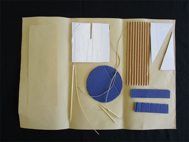 assemblage, collage, pliage, superposition, renforcement, matériaux, matière, objet, relief, bas-relief, volume, sculpture, vide/plein, résistance des matériaux, solidité, unité, présentation, point de vue