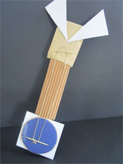 Les élèves sont placés par groupes de deux (trois si besoin). Ils reçoivent tous une pochette identique, distribuée pliée, contenant divers matériaux. Ils découvrent et analysent ensemble le contenu en manipulant si besoin les éléments. Les élèves devinent en partie la procédure à venir. Le professeur complète l’annonce : « Ma petite guitare est cassée. Réparez-la ». Il liste les contraintes (utiliser toutes les parties sans les modifier, la guitare doit être solide et transportable, les fixations doivent être le moins visible possible). Le temps de fabrication est estimé à 30/35 minutes. Les élèves reçoivent une bannette contenant des moyens de fixation (colle vinylique, ruban adhésif transparent, bande cache) qu’ils peuvent utiliser, ou non, afin de réparer cette guitare. La diversité des matériaux doit amener les élèves à éprouver l’hétérogénéité et peut permettre des écarts de formes et d’usages dans les réalisations.
