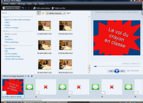 Les élèves ont eu à trier, choisir et numéroter leurs 6,7, 8 ou 9 images, ensuite je leur ai demandé de réfléchir à leur présentation. Certains optent pour un diaporama (power point) sur Openoffice Impress ou Windows movie maker, d'autres pour une mise en page sur Photofiltre (type planche de bande dessinée). Les élèves prennent très rapidement les logiciels en main. Néanmoins, il faut intervenir souvent pour qu'ils ne se contentent pas de les utiliser de manière automatique (les inciter à changer couleurs, police, effets et transitions) ou au contraire à limiter les effets qui parfois perturbent la lecture de leur travail (sur movie maker notemment !)