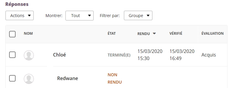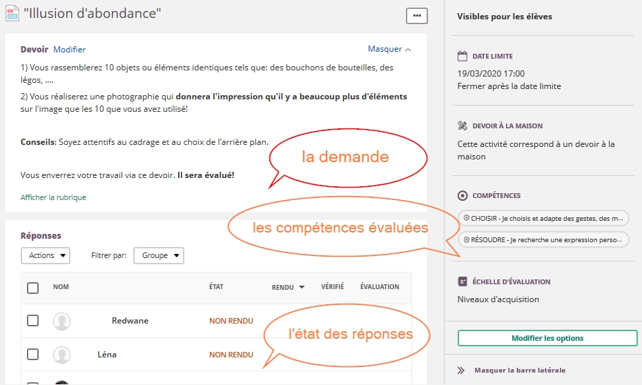- pour le professeur, de suivre l'avancée de ses élèves, de receptionner les productions et de les évaluer