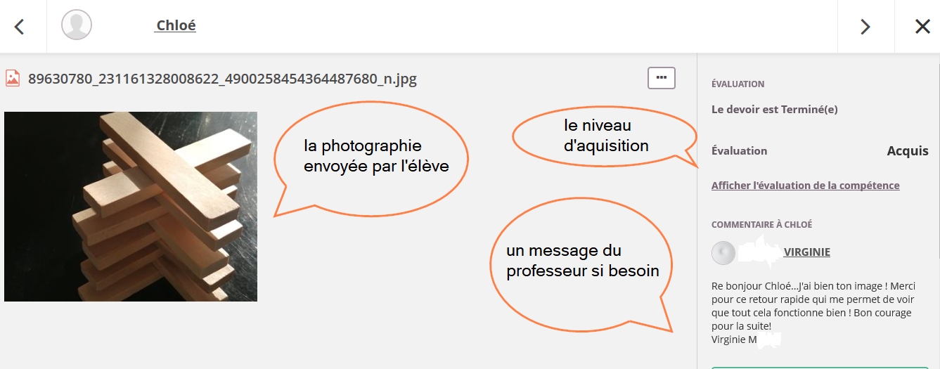 L'élève publie sa production, l'enseignant la réceptionne...