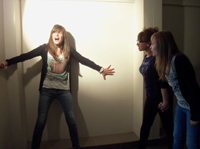 Le projet de ces élèves (réaliser une ombre inquiétante) était assez simple à concevoir comme à réaliser. Pour autant, les phases d'expérimentation puis de choix ont été déterminantes pour permettre aux élèves de comprendre les éléments constitutifs de leurs images, à commencer par le cadrage. Quant à la phase d'analyse, lors de la verbalisation, elle a pu faire apparaître que la quasi disparition du décor, ou tout au moins son abstraction, rendait l'apparition plus mystérieuse et fantomatique et l'image plus poétique, plus fantastique. Le rapport à la réalité semblait alors bien ténu !