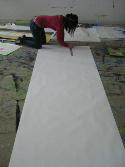 Les élèves ont à leur disposition différents types de supports, différents formats de papier (du A4 au format raisin mais également du papier en rouleau permettant de réaliser de grandes productions). La surface travaillée est déterminée par le choix du geste et de l'outil mais l'élève doit encore réfléchir au format: