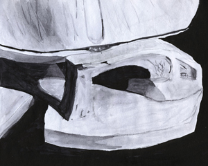 Dans un premier temps, il s'agissait de réaliser, individuellement, plusieurs dessins et lavis d'encre à partir de documents représentant la Maison sans fin (croquis, plans, maquettes, etc.), afin de s'approprier le vocabulaire formel de cette œuvre énigmatique et singulière.