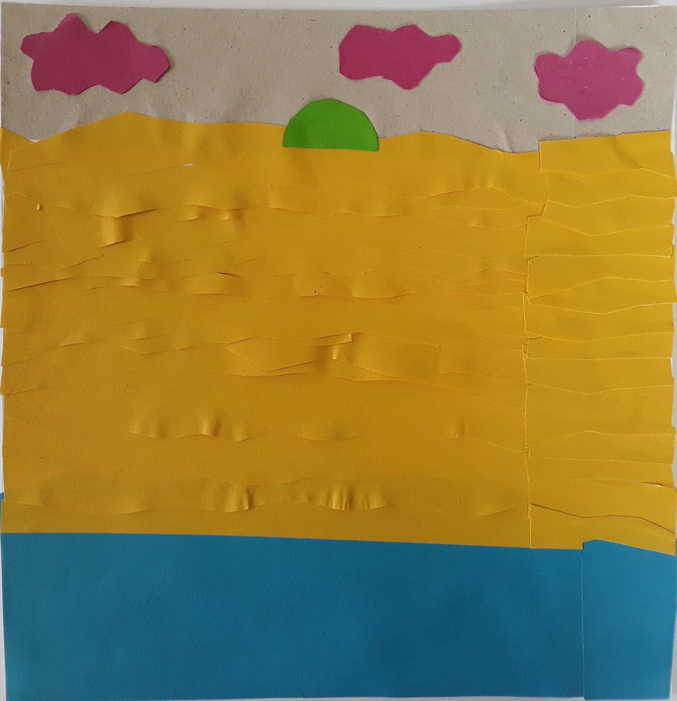 Pour envisager une certaine différenciation, l’activité peut être lancée avec une autre demande comme par exemple : « Dune, rocher, mer, ciel, plage, aucune couleur n’est à sa place ». Il s’agira alors à l’élève de se concentrer sur le choix des formes et des couleurs en évacuant peut être la réflexion sur ce qu’est un paysage. |