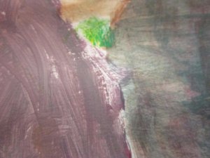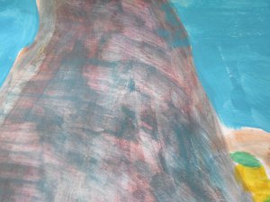 Ce dessin représente un ciel de même couleur avec quelques nuances blanches, ce qui fait un effet de grain. | Cette montagne a plusieurs couleurs, pour montrer que certaines roches sont de différentes couleurs. |