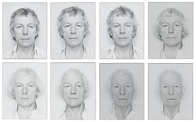 Autoportrait, Photographies noire blanc sur papier, 24x30,50cm. Galleria Melesi Lecco, Italie "... ce que je nomme mon autoportrait, est composé de milliers de jours de travail. Chacun d'eux correspond au nombre et au moment précis où je me suis arrêté de peindre après une séance de travail. " |