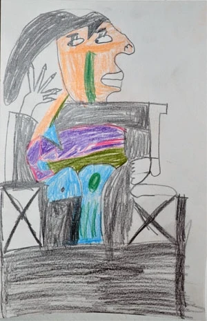 Suite à ce dernier temps de pratique plastique, les élèves sont invités à accrocher les dessins au mur, à coté de ce qui ressemble au premier de la série.