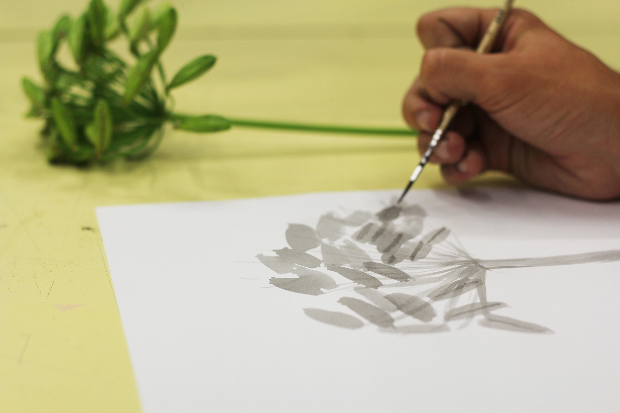 "L'observation du végétal est importante car on peut utiliser plusieurs techniques pour un même végétal mais certaines techniques le représenteront mieux. Certaines plantes fines comme l'aster ou l'anémone doivent être représentées avec un trait délicat comme avec l'encre de Chine. Des plantes sans détails, informes comme l'hortensia seront faites à la peinture à l'éponge.