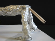 papier aluminium, piques en bois, ruban adhésif.