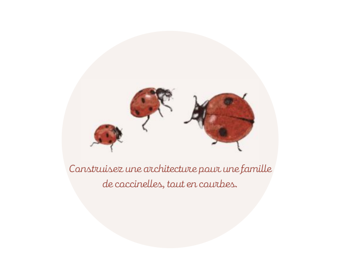 - Sa forme courbe ainsi que les pois noirs sur sa carapace permettent d’inciter à construire à partir de formes courbes et donc de sortir des stéréotypes liés à la maison traditionnelle