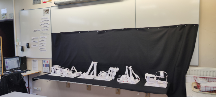 Les élèves disposent de cinq minutes pour ensemble observer leurs maquettes, les comparer et établir des liens entre leurs réalisations et le mot proposé. Leurs réflexions sont notées sur une fiche de verbalisation. En fin de séance, un porte-parole par îlot partage avec le reste de la classe le fruit de leurs échanges. Les mots - clefs et idées principales sont notés au tableau.