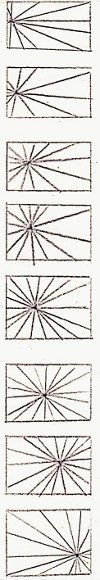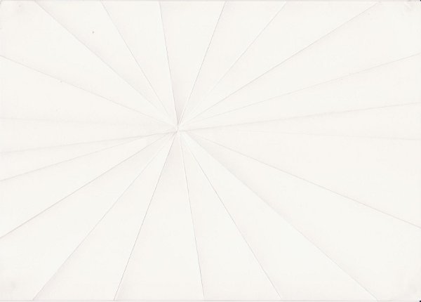 L'action de plier laisse apparaître un trait sur la matière papier et la présentation des 8 feuilles les unes à côté des autres permet au spectateur de tracer visuellement une ligne qui rejoint tous les points.