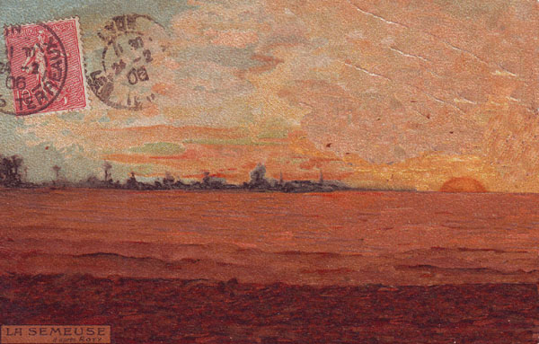 Je n'ai pas travaillé à partir d'une peinture ou d'une photographie mais à partir d'un symbole célèbre (celui de la République) reproduit ici sur une carte postale datant du début du XXe siècle. C'est Louis Oscar Roty, graveur de monnaies et médailleur qui en est à l'origine. La présence du timbre au recto de la carte postale, donne un indice de la nature de la figure gommée. Il reprend en effet l'image symbolique de « La Semeuse » créant ainsi une mise en abîme devenue potentielle. (Mylène)