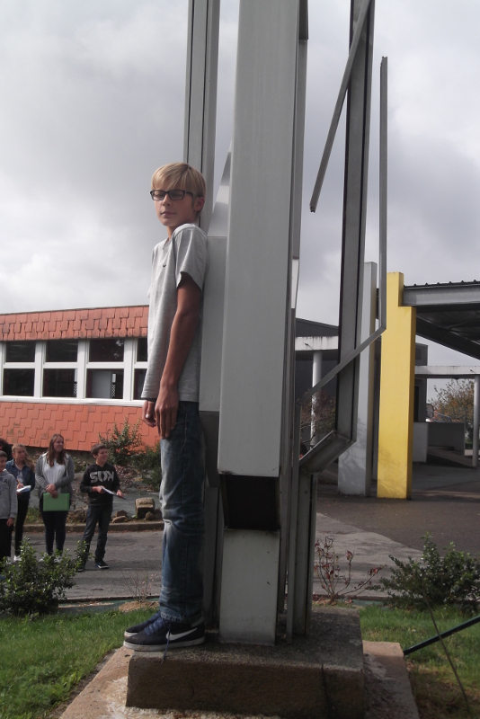 Le projet académique autour du 1% artistique a fourni une thématique idéale pour travailler sur la question du patrimoine. Avec Mme Assenard en sciences physiques et M Théfany en arts plastiques, la classe de 5èmeD construira donc son projet autour de la sculpture présente au collège. Le principe de ces classes étant de rendre les élèves acteurs de leurs apprentissages en s'appuyant sur leurs propositions, rien n'a été prédéfini quant aux productions finales. Néanmoins, il s'agira de s'interroger plus particulièrement sur la notion de temps : celui de la sculpture, celui qui rythme la scolarité des élèves et celui du collège. Nous y consacrerons une heure et demie par semaine en classe entière. Ce projet fera écho à celui de la 5A qui, avec Mme Roiné en Histoire et Mme Landaburu en éducation musicale, travaillera sur "les traces du passé". Par cette confrontation du passé et du présent, il s’agit aussi de faire prendre conscience aux élèves que l’art d’aujourd’hui est aussi le patrimoine de demain.
