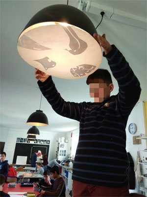 Le dispositif d'enseignement est spécifique. Il est ainsi proposé, selon le cartel, une technique différente à travers des minis-ateliers installés dans la salle. L'enseignant a en amont préparé des espaces propices à la création avec notamment un pôle "peinture" près des points d'eau, un espace "photographie" aux abords du bureau, un autre dédié à l'idée d'installation-sculpture et enfin une grande table pour les collages.