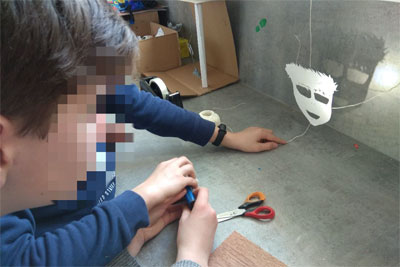 3 séances sont prévues et, selon le cartel dévolu, des médiums et matériaux sont à disposition : appareil photo, peinture, papiers journaux, colle, ciseaux. Collaboration par groupe de trois.