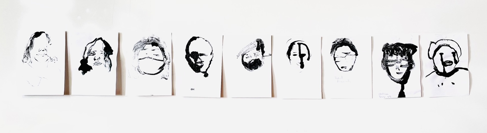 Les notions et les questions qui émergent lors de cette verbalisation portent sur l'image, mais aussi la forme. Les termes de transfert, impression, reproduction, geste, support, décalcomanie, autoportrait, observation, écart & ressemblance, image poétique, hasard et accident lié à un procédé immaîtrisable...sont mutualisés.