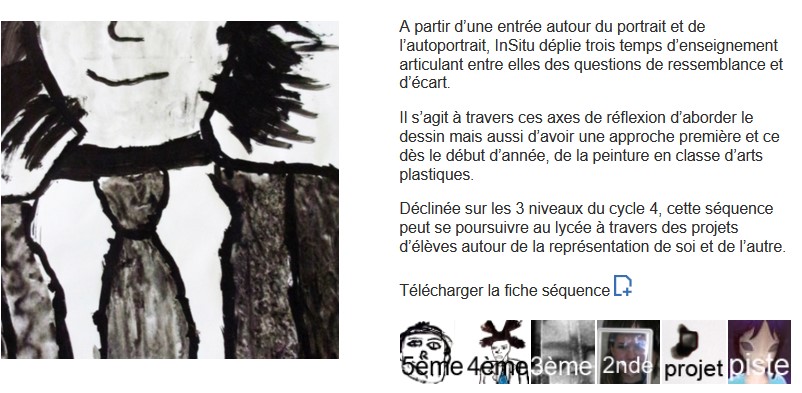 Cette leçon part de l'envie de faire travailler des élèves d'éducation prioritaire sur la représentation de soi, par l'intermédiaire du portrait, tout en permettant à ceux qui ont des difficultés en dessin de réussir à produire une image qui aurait de la ressemblance.