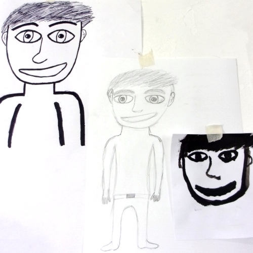 Séance 1 :Cette séance est la première de l’année. Il s’agit aussi de prendre le temps de se présenter, de s’installer dans le rythme et de parler de l’année à venir. La pratique envisagée permet de répondre à toutes ces questions. Simple et directe, elle débute sur la deuxième moitié de séance. La distribution du matériel est rapide (les 3 feuilles par élève) et laisse environ 20 minutes d’effectuation. Le temps du premier croquis au crayon de papier est le plus long. Ce premier « dessiné achève ainsi la première séance. Nous y reviendrons pour relancer l’activité, lors de la deuxième séance. | | |||||||