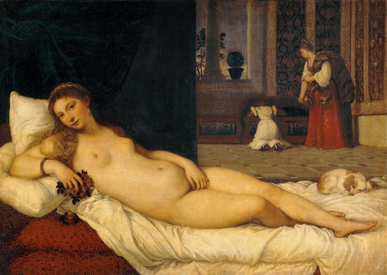 Titien, Venus d'Urbino, huile sur toile, 119x165, 1538, Galerie des Offices, Florence.
