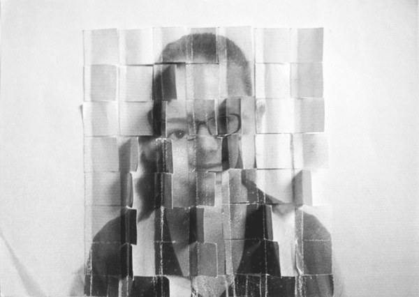 "Mon portrait apparaît ou se défait sous l'action du spectateur" Chaque élève reçoit une photocopie de son portrait du début d'année (trombinoscope), format A5. " Vous allez devoir inventer et mettre en place un dispositif dans lequel le spectateur n'est pas uniquement devant, à regarder votre image mais il devra être acteur (actif). Sous son action votre portrait va apparaître ou, au contraire, se défaire. La combinaison des deux états est possible. Moyens libre, la photocopie peut servir de support ou de modèle pour une transposition sur un autre support, dans un autre espace..." |