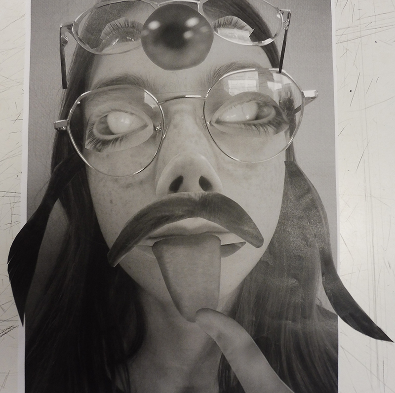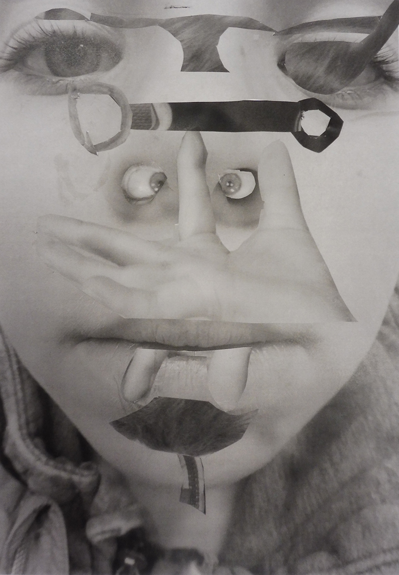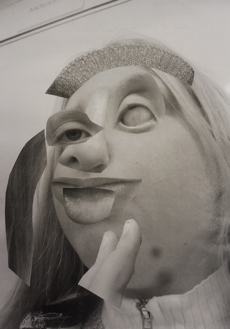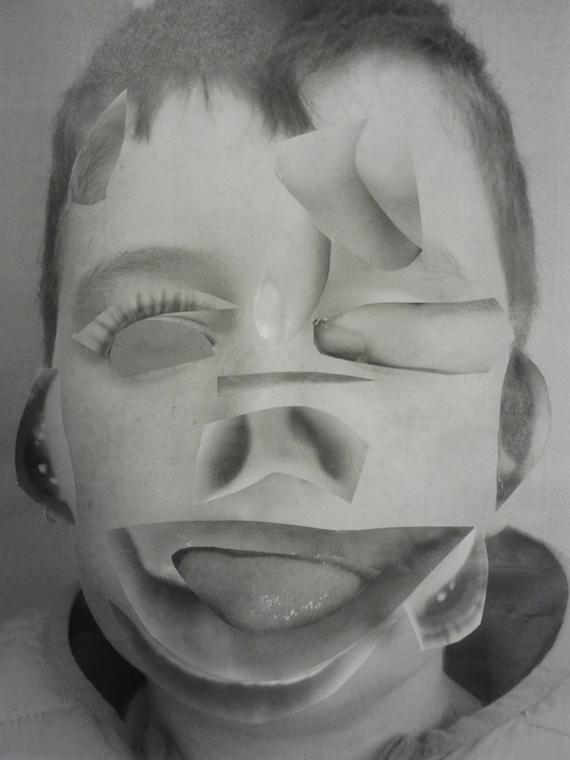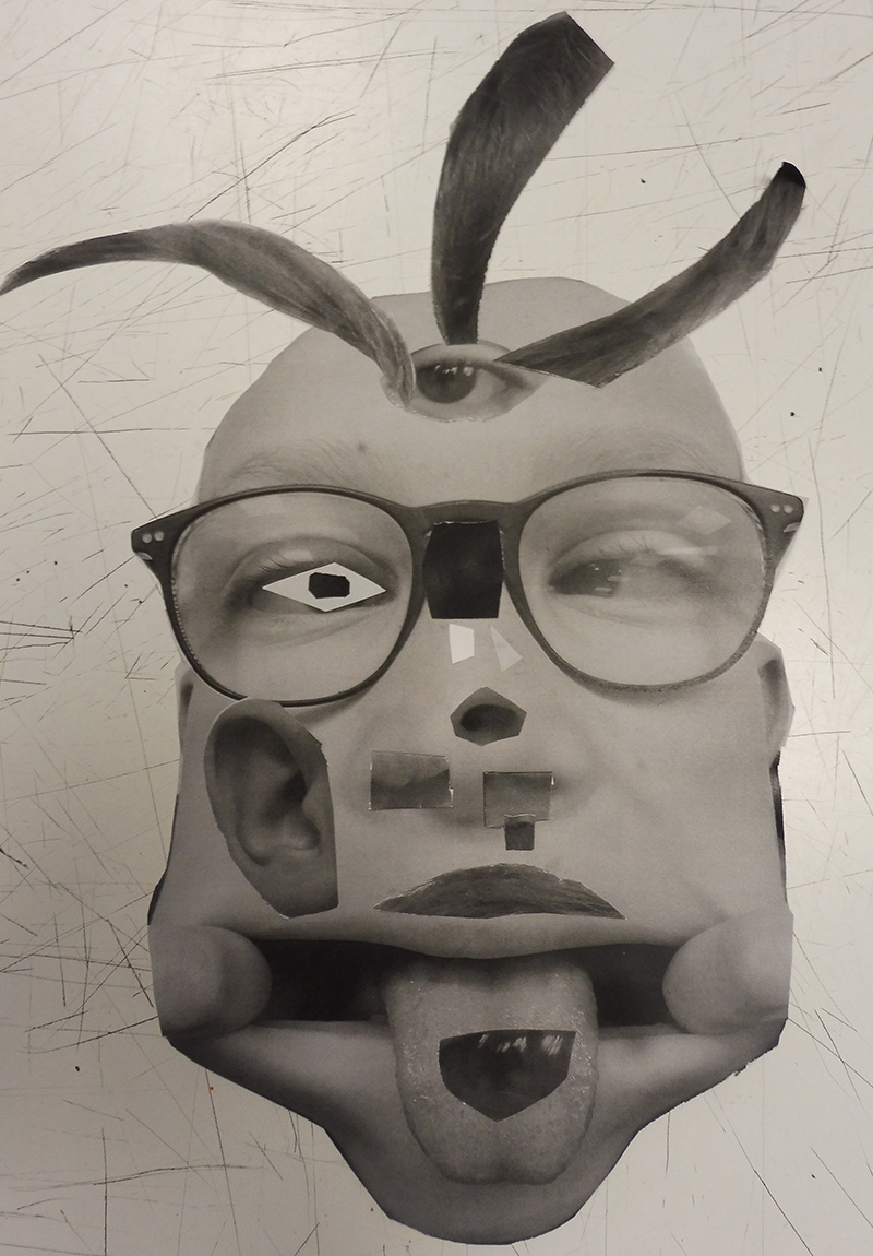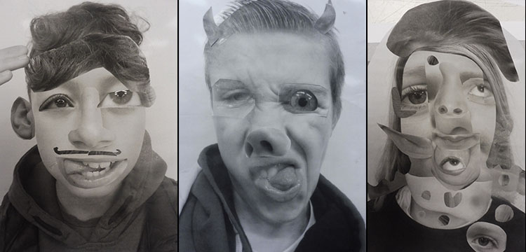 A leur arrivée en classe, les élèves découvrent sur leur table des feuilles de différents formats posés de dos sur leur table, des ciseaux et de la colle. Après les avoir questionnés sur le matériel à disposition, ils comprennent que les images prises la semaine dernière vont être leur matériau pour construire une nouvelle image et vraisemblablement un nouveau portrait d’eux même, en utilisant la technique spécifique du découpage et du collage.