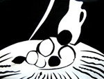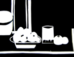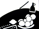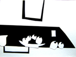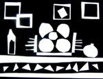 Faites une reproduction de ce tableau avec ce qui est à votre disposition.Les élèves disposent de papier à dessin blanc et noir ( sans restriction de quantité), d'une paire de ciseaux et de la colle.