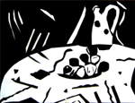 Quand une forme devait se détacher et de la table et du mur de fond, ils ont parfois inversé les couleurs de papier, n'hésitant pas ainsi à morceler l'objet représenté.