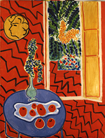 Intérieur rouge, nature morte sur table bleue 1947 |
