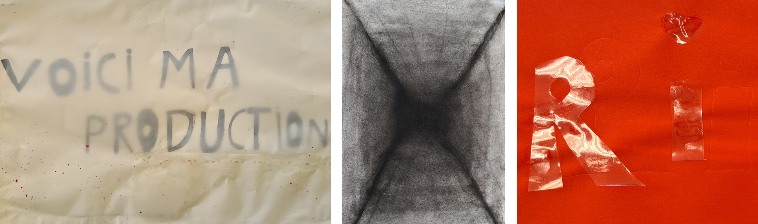 Les temps de pratique viennent questionner les constituants plastiques, interroger ce qui n’est plus présent, et ce qui est malgré tout donné à voir.