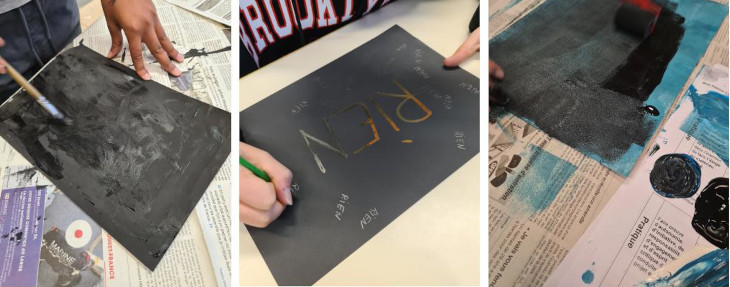 Les outils utilisés viennent creuser le support, rayer les formes, effacer les couleurs…Le collage vient obstruer une éventuelle image, car cacher c’est montrer même si on n’y voit rien.