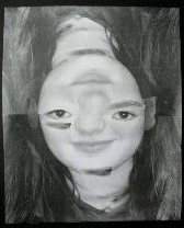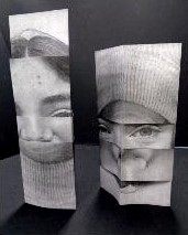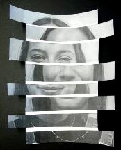 "Imbriquer/dissocier: imbriquer, ce sont des objets, des matières, des couleurs qui peuvent s'assembler les unes dans les autres; dissocier, c'est le fait d'opposer ou de mélanger les parties d'un objet, d'une matière, d'une couleur... J'ai choisi de mettre en avant mes yeux puisque j'adore tout voir. J'ai chiffonné mon front et je l'ai mis en bas car je ne l'apprécie pas. J'ai mis une partie de mon cou en hauteur car je l'aime bien donc je le mets en valeur. J'ai choisi de faire fondre mon sourire et une partie de mes cheveux, car je leur donne de l'importance et j'ai laissé le reste tel quel car je ne lui donne pas d'importance et je pense que ces éléments n'ont pas besoin d'être modifiés. Les mots m'ont fait penser à un puzzle, mais qui ne s'imbrique pas, c'est - à - dire un puzzle imparfait, tout comme moi. Je trouve que mon travail me représente." Malaury