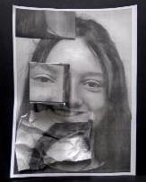 "Déchirer, réparer: tout d'abord, j'ai commencé par déchirer mon visage en plein de parties, après au crayon à papier, j'ai dessiné quelques points de suture pour donner l'impression que j'ai été opérée. Ensuite j'ai découpé sur les autres images des parties de mon visage pour les assembler avec un bout de papier sur mon projet. Pour finir, j'ai enlevé des parties de mon visage qui me semblaient inutiles. Je n'ai pas respecté la forme de départ (rectangle de la feuille) et ça fait une forme catastrophique. Ce qui représente l'effet de la chirurgie." Colleen