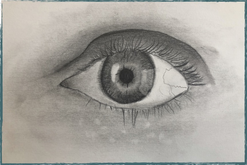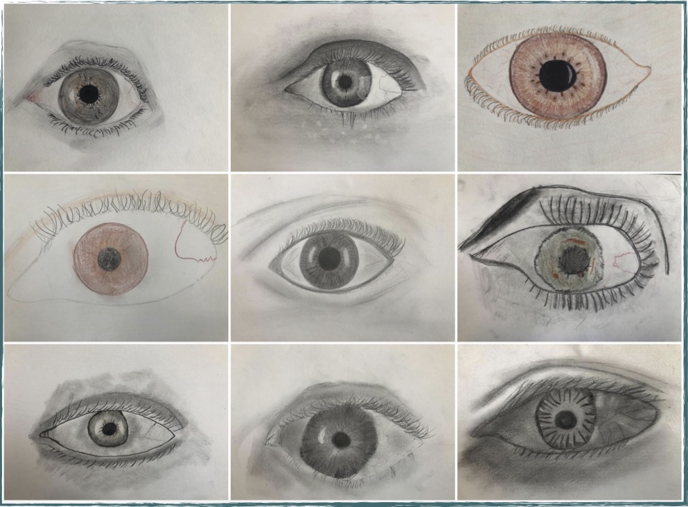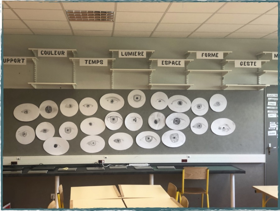 Les élèves ont un temps limité de 25 minutes pour dessiner cet œil. L’heure de fin est indiquée au tableau.