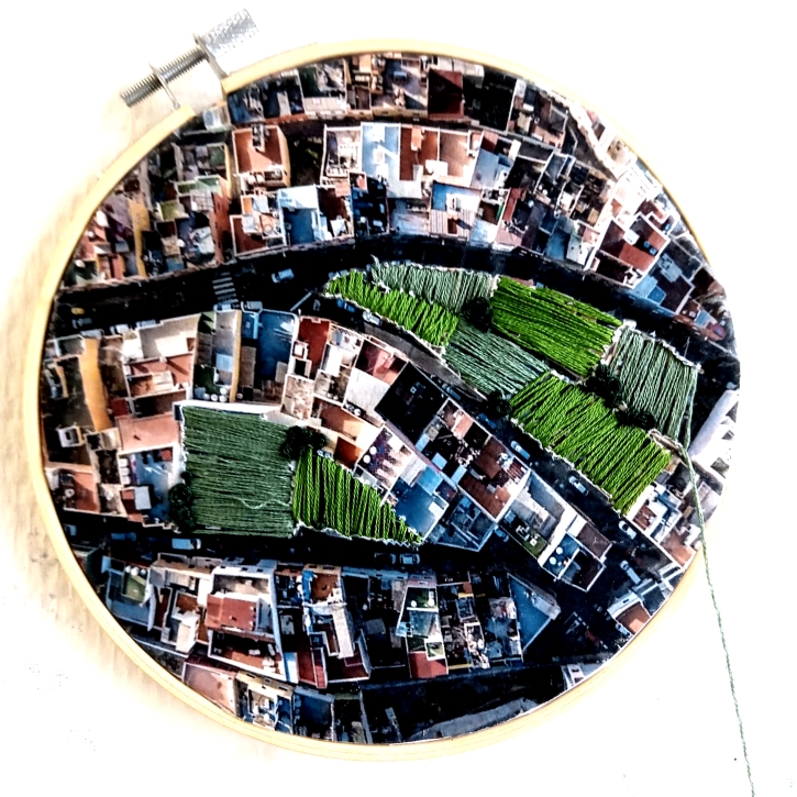 J’ai pensé à créer un paysage à partir de morceaux de tissus et de fils. Ma question :