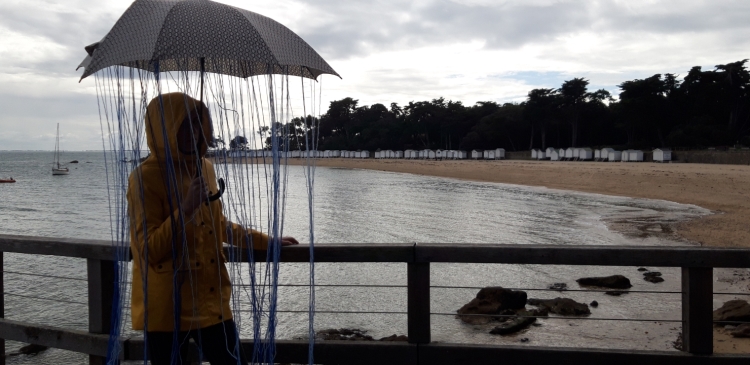 « Dans un premier temps, j’ai réfléchi sur les deux mots clés séparément, sans unité. Je me suis demandé sous quelle forme je voulais travailler le fil, et quel genre de paysage m’intéressait. Je me suis alors questionnée sur ce qu’était un paysage, car je n’étais pas sure d’en avoir toutes les notions. Pour moi, le paysage, c’est un ciel, une ligne d’horizon, quelques plans qui se superposent pour créer un ensemble.